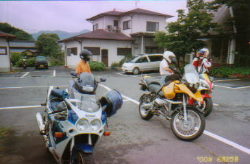 そして,当日の朝は,大雨で取りやめということになりそうな感じになってしまいました。電話連絡を取り合う時刻(午前7:00)にはすでに,レインウェアを着込んだメンバーの一人(いしふね)から今回の幹事役のこうざいさんにもう出発してるからという連絡が入り,検討の結果,午後からは天候が回復しそうなので,天候の回復を待ってから出発しようということになりました。