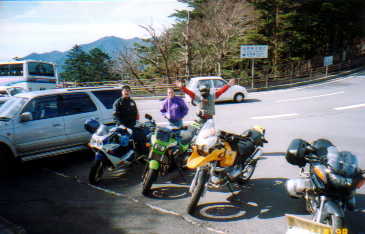 スカイラインの頂上駐車場 寒そうなメンバーたち