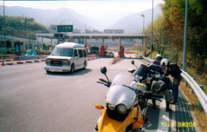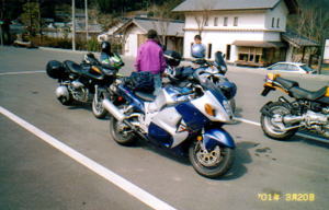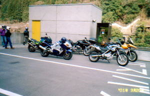 みんなけっこういいペースで走るが,何となく自分のペースがあげにくい。新しいバイクで走るのは初めてだから慣れていないのかな?と思っていたが,ブレーキのきかし方が違うのだと思う。GSX−R1100Lにくらべてぐっと握らないときかないのだ。(握ればきくよ)一度スピードが落ちなくて怖かったのだ。
