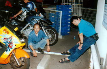 日付が変わってようやく乗船手続きが始まる。今回は,バイク乗船・客室を予約してあるのでゆっくりしたもんである。しかし,思ったより列のすすみが遅く,長い間列の並んでもらった幹事のこうざいさんに感謝。