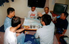 階段を上って客室の受付に向かう。今回は1等船室を予約しているので乗船してから客室の受付が必要なのだ。客室の受け付けはなんと4階,さすがに大きい船だね。(私たちの部屋はさらにその上)1等Bが4人部屋。1等Aは1人部屋。メンバーは7名なので1等Bが1部屋,1等Aが3部屋となる。部屋割りは,さとうさんといしふねはどこでも寝ることができるというので4人部屋。こうざいさんとみよしさんはいつも睡眠をとるのに苦労するというので1人部屋とはじめから決まっていた。後のメンバーはどちらでもいいということだったが,何となく,ふじもとさん,はらださんが4人部屋,なんばらさんが1人部屋ということになる。