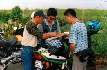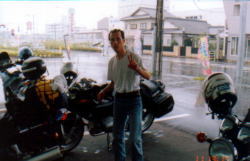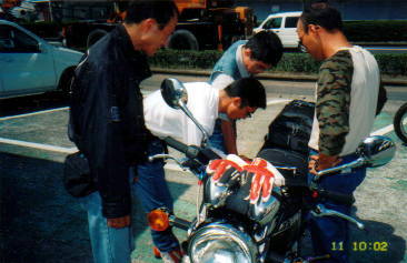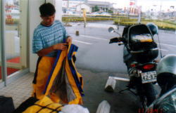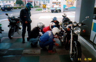 下船後,無線の確認をして出発。宮崎をめざしてR10を走る。今治で給油できなかったので,ゼファーの点検をかねてガソリンスタンドにはいる。工具などを借用しながら,なんとかブレーキランプがうまく作動するように修理する。