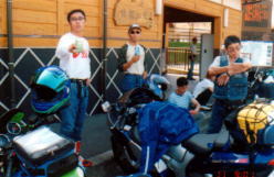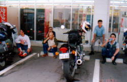 コンビニの次はホームセンターと思っていたが,バイク屋を見つけたので停車。工具を借り,ボルトやワッシャをだしてもらって,ゼファーのサイレンサーやショックをとめる。いい具合にワッシャを挟むことができたのでこれで脱落の心配もないだろう(こうざいさん談)とのことで,一安心。お金を払おうとすると,無料ということ。感謝!