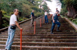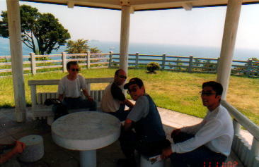 さすがに南国というわけではないかもしれないけれど,とにかく暑い。少し歩くごとに汗が噴き出すような暑さ。しかし水平線の広がる太平洋と,波がぶつかる岩の景色はなかなかでした。灯台の展望台から景色を堪能した後,眼下に見える馬の背を目指すかどうかという話題になると,みんな暑さに負けて,さっきの店で氷でも食べようということになる。