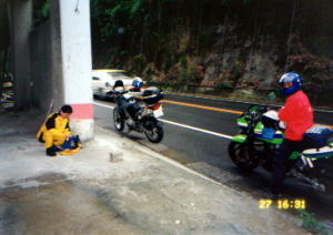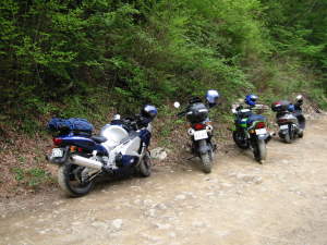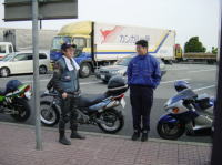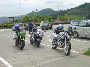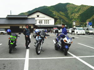 ゴールデンウイークのツーリングであるが、朝天気も良くないので、ずいぶん寒く感じる。3人とも温かいものをおなかに入れて出発。