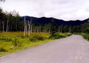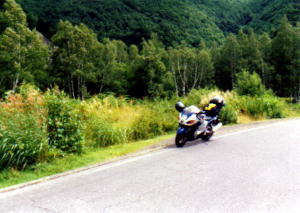 奈川温泉より上高地乗鞍林道へ。乗鞍高原へのルートであるのでずいぶん混んでいるのかと思っていたが,そうでもなかった。途中から,雨が降り出し,合羽を着るが,白樺峠前では天気が良くなりカッパを脱ぐ。