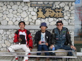 "姫鶴荘にて昼食(焼き飯:香西、南原 カツ丼:三好,佐藤)"