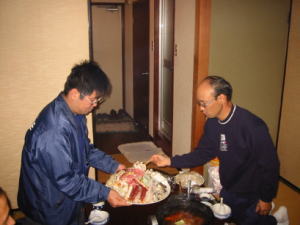 11月30日(土)に恒例の忘年会がありました。例年通り20:00スタート。 今年も24:00まで盛りあがりました。 昨年は、全員集合となったのですが、今年は残念ながら、2名欠席の8人でした。 場所はここ何年も変わってません。特に場所に関しては,なにせ終了時間が24:00前後いう時刻まで,いやな顔せず場所(美山ホテル)を提供してくれるところはそう多くないので,メンバーもあそこなら安心してという感じです。(幹事もここ何年か変わっていない)