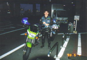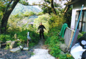 玄関前にバイクを並べる。