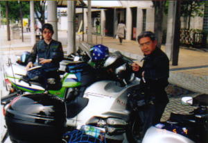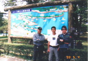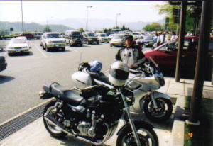 天橋立 さすがに日本三景の一つというだけあって大きな観光地。2つほど駐車場に聞いたけれどバイクを止めることができない。さとうさんの先導で,やっとバイクを駐車することができる駐車場(¥300)を見つけることができた。