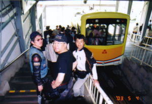 降りるときには,みんな考えることは一緒。リフトの待ち時間がかなりありそうなので,残念ながらケーブルカーで降りる。こちらは混んでいるものの1回で乗ることができた。