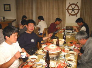 乾杯のあと,自分の前にあるかにをむきながら,しばらくはみんな無言で,かにを食べる。