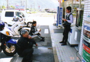 高速手前でさとうさん給油。他のメンバーは無給油で家まで帰ることができそうと給油せず。