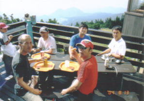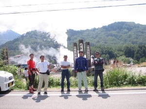 町営の風呂に入ろうと三件ほどのぞいたがどこもいっぱいなので、こうざいさん、なんばらさん、さとうさんは宿へ帰ってねることに。いしふね、はらださん、ふじもとさんは風呂が空く時間を待つため、居酒屋で一杯飲む。