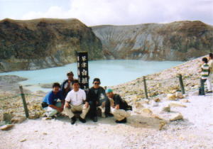 平床大噴泉(ほたる温泉)硫黄の混じった水が頭上から降り注いでいました。