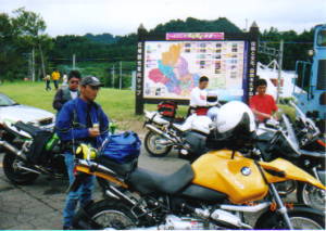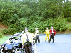 R17は群馬から新潟へ抜ける三国峠を通るコース。かなりの区間ワインディングが続く。しかし、対向車線のバイクの人がカッパを着ている!はじめは峠が寒いせいかなとも思ったが、対向するバイクすべてがカッパを着ているので、自分たちもいつカッパを着ようかと無線で話しながら登る。きっと三国峠を越えたら降っているのではないかとみんな思っているようだ。三国峠手前でも路面が濡れていたが、三国峠を越えても、路面は濡れているものの雨は降っているかなという感じ。