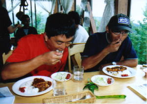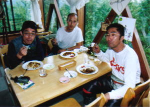 大沢峠付近のレストラン この周りには店はないせいか、結構はやっていました。みんなの食べたメニューは、カツカレー、ハンバーグカレー、スパゲッティ。