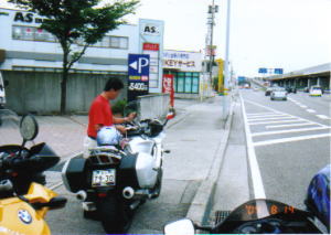 金沢西ICを降りたところで、全員カッパを脱いで金沢市内のルート確認