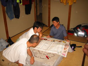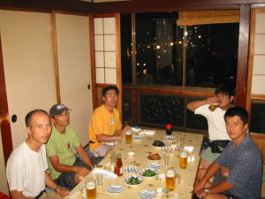 今日は泊まり客が少なく、YHの部屋があいているというのでもう一部屋かしてもらい、はらださんといしふねは4.5畳の部屋で後の4人は10畳の部屋で寝ました