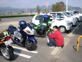 さとうさんへは、ふじもとさんから別のツーリングに行くからと電話が入ったそうだ。(昨日のミーティングで急遽、行き先や集合場所が決定したので、伝えきれないメンバーもいた)やまさきさんは、別の用事をすませたあと時間が合えば参加できると言うことで、集合時間を過ぎて少し待つ。10分ほど遅れて出発。