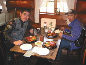 国道に出たところで昼食場所を探し、目についたレストランにはいる。(ハンバーグレストランでした。)