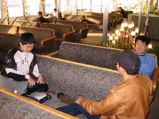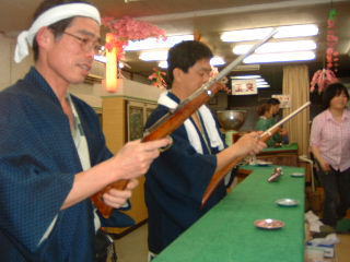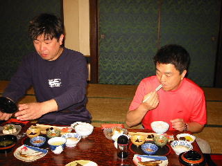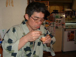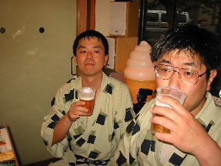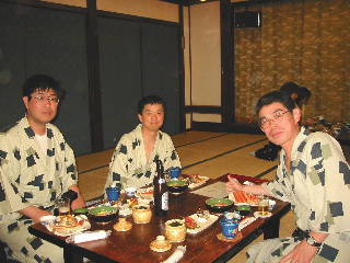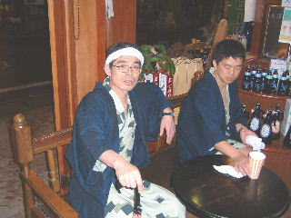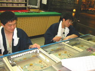 私たちが入った店は,私たちがゲームを始めたときには,客は私たちだけ。ゲームをやっているうちに徐々に増えて満員に!私たちは福の神か!と思っていたら,温泉客が夕食が終わって歩く時間になっただけでした。