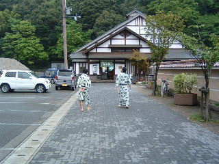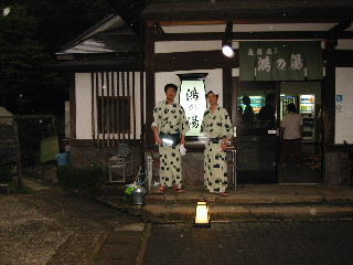 夕食後 外湯巡りをしに温泉街へ。各旅館では,外湯巡り用の入湯券を無料で何枚でも配ってくれます。