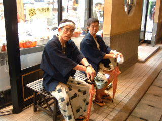 皆さん朝から浴衣で街を歩きます。