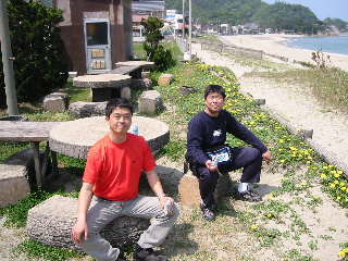 11:00 浦富海岸で休憩 かなり暑くなってきた。