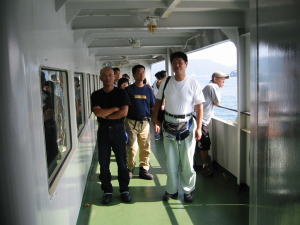 お盆の時期ということか、車両甲板は車でいっぱい。車が上陸しないと身動きがとれない。