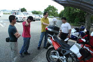 それぞれが買い物をして話をしていると、TLさん登場。毎週日曜日は、用事が入っていて参加できないと聞いていたので、どうしたのかと聞いてみると。寝坊したそうである。TLさんは昨日、四国カルストまで行っていたそうで、今日は佐田岬ツーリング。なかなか元気である。