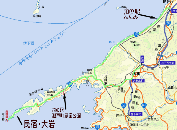 大洲ICを降りてからのルートを確認。八幡浜が混雑するかな?
