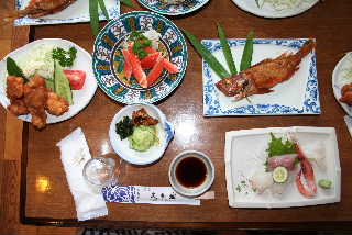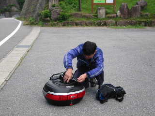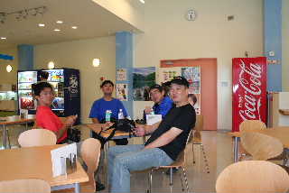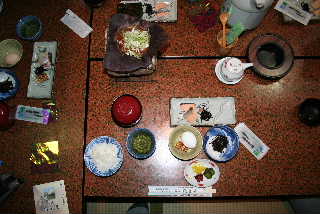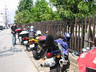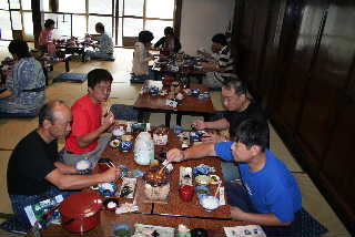 | 夕食前に軽くいっぱい。近くに店がないので、こうざいさんとはらださんが給油がてら、コンビニへ飲み物とつまみを買い出しに行ってくれました。 |