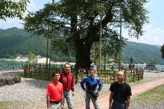 | 御母衣湖の湖畔に立つ大きな2本の桜。御母衣ダムができる時に一緒にダムのそこに沈む予定だった2本の桜の巨木を現在の場所に移植したそうです。 |