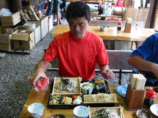 少し遅くなったが、相倉合掌集落で昼食。メニューはさるそば・かけそば・セット。日差しは強いが風通しが良く、おいしく頂きました。