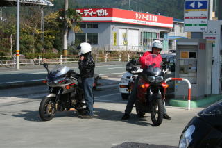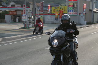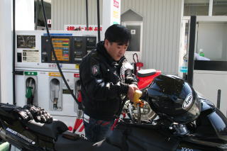 10:50 本山にあるセルフのガソリンスタンドにて給油。幹事曰く、これから安居渓谷までガソリンスタンドがないよとのアドバイスで、ほとんどの人が給油(航続距離の長いGSは今日も無給油)