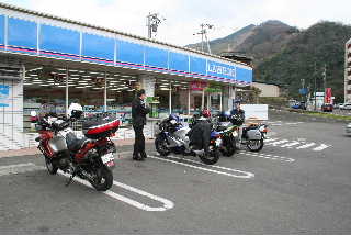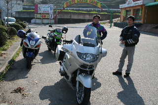 奥道後をすぎたところで休憩。クルマにペースを合わせて走っていたので、眠気防止のため。ここには、転んだバイクをレッドバロンのクルマが引き取りに来ていました。