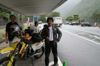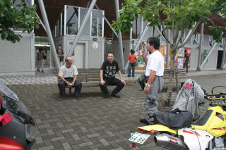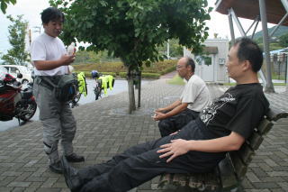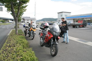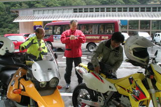 8:00前 集合時間15分以上前であるが予定の3人はすでに集合完了。今回は高速を使う予定もないし,道もタイトであるのでいしふねはTZR125で参加。