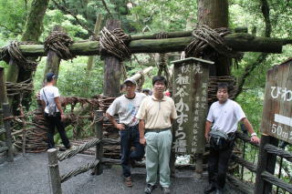 かずら橋を渡ったらいいんだけど,初めてきた人もいないし,対岸まで歩くのもしんどいし,お金も…。ということで出口側で記念写真。