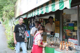 豆腐とこんにゃく,ジャガイモのみそ田楽があったのでみんなでほおばる。一人が注文するとじゃあ私も私もということになり,結局全員で食べました。まだ,あぶり始めたばかりのようで中は冷たいところもあったけど,なかなかおいしかった。