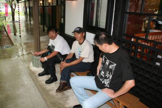 みそ田楽を食べている間に,また雨が降り出し,ものすごい豪雨になる。待っていてもらちが明かないので,カッパを持ってきて出発準備。
