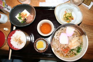 Westwestに隣接しているそば屋さんで昼食。2組ほど待っていたが,これからカッパを着て次の店を探すのもおっくうだし,時間も余裕があるので店外のベンチに腰を下ろして待つ。
