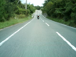 ヘアピンや緩いコーナーの続く寒霞渓への道。とても楽しい道でしたが,TZR125のいしふねは,コーナーの度に1速全開で立ち上がりますが,コーナー出口では,前を走っていたバラさんの後ろ姿がみるみる小さくなっていきました。