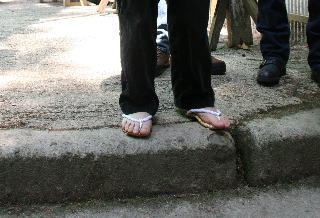 結局いしふねの靴は靴底のミゾが残っていないということで,不合格。行くのをやめるか,わらじを買って上るかの選択。本人は,これ幸いとやめるつもりでしたが,他のメンバーは当然行くでしょ。という雰囲気。まあ行けるところまで,ということでわらじを買い,履き替えて出発。