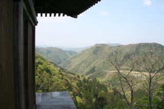 文殊堂からの眺め。なかなか綺麗なのだが,手すりもなく外に向かって傾斜がついている所を歩くのは高所恐怖症の者としては冷や汗もんです。ついへっぴり腰になります。