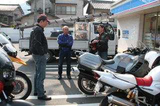 7:15 コンビニにて休憩。軽く朝食にする人も。