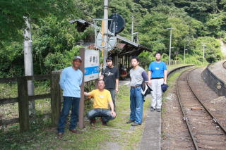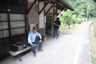 国道沿い(バスの停留所かも)にバイクを止めて駅まで歩きます。(今時バイクさえ行けない駅なんて)
