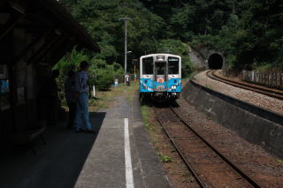 スイッチバック方式で駅に入ったり、出発したり。右に見えるトンネルは香川方面。