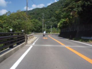 鳴門池田線 峠を越えるときは曇っていて暑くなかったが、吉野川沿いを走り出すと、天気も良くなり気温が上がってきた。