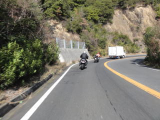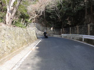 しばらく行くと,道は山に入り,狭くヘアピンが続く道に。